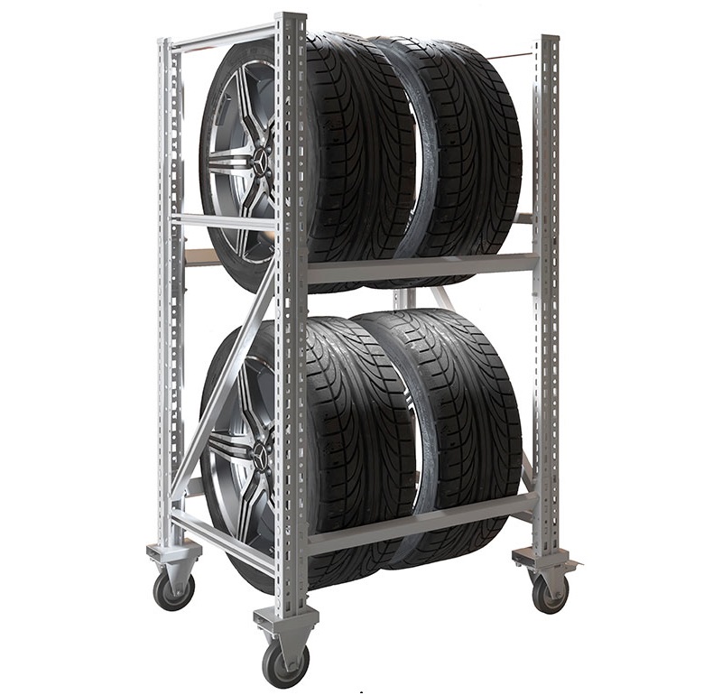 Стойки представляют собою угловой профиль с частой перфорацией, позволяющей установить ярусы в соответствии с диаметром колёс. Максимальная нагрузка на изделия варьируется от 170 кг (модели на четыре шины) до 340 кг (модели для восьми шин).